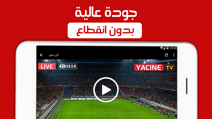 ⚠️ ملاحظة: يحتاج التطبيق لاتصال قوي بالإنترنت، لأنه لا يتيح خفض جودة البث.